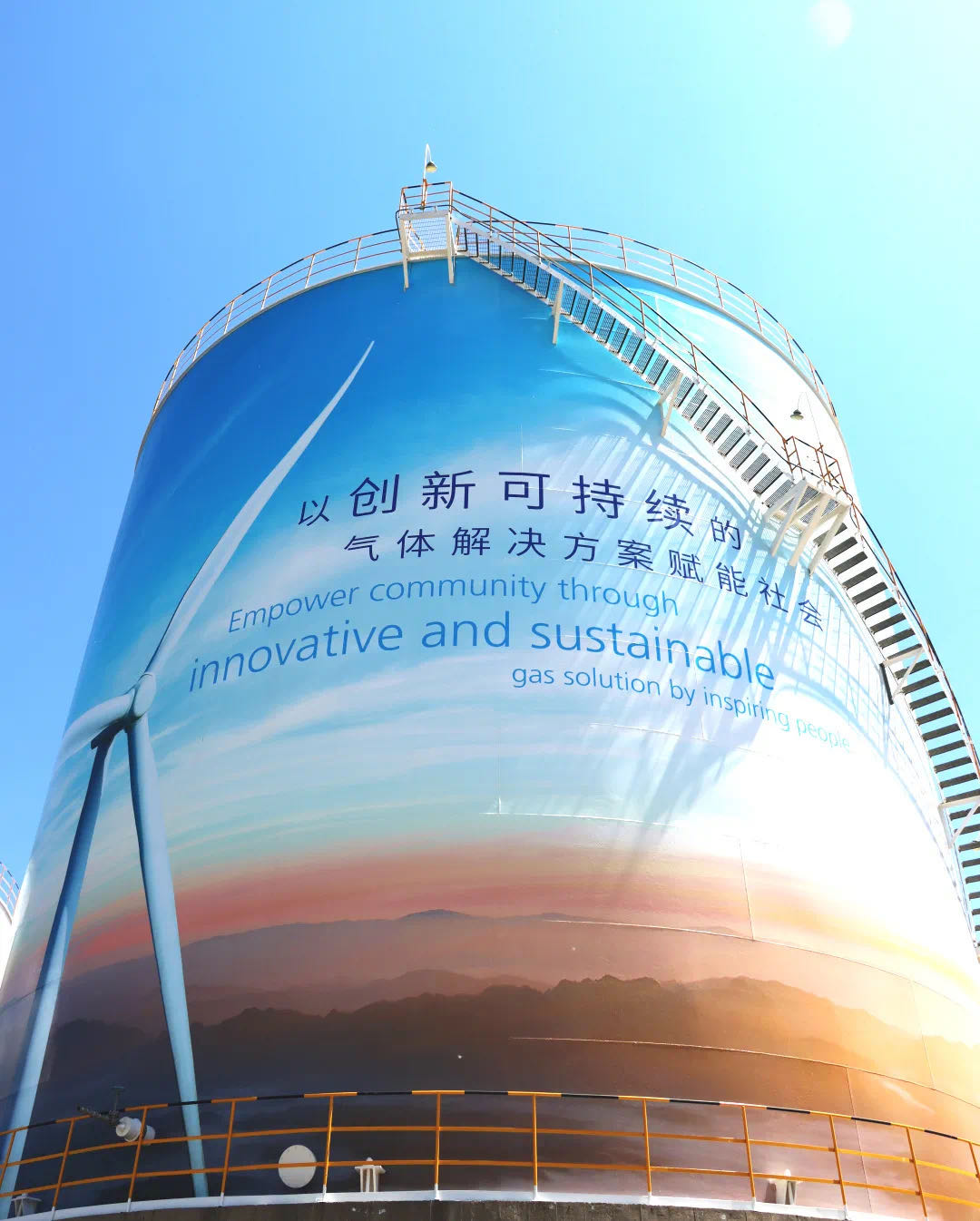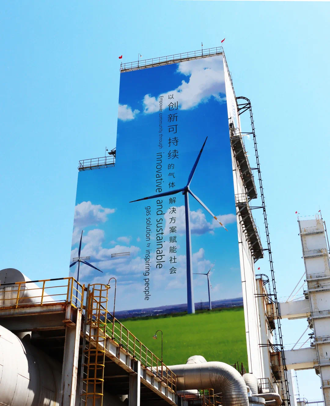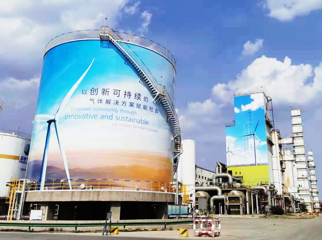 20215月,,,8188cc威尼斯和宝钢气体以包头工厂为试点,,,开启了“绿色”空分装置的全新焕颜时代。。。。全新升级的空分装置外观以草原、山水、天空、风车等自然风貌描绘于塔身,,,时刻转达着可一连生长的理念,,,以及与相助同伴携手共建绿色、低碳未来的刻意。。。。